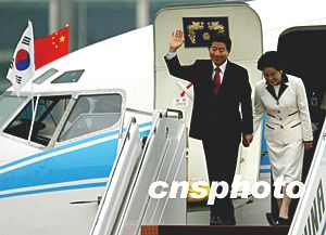 多圖:韓國總統(tǒng)盧武鉉抵京 開始其訪華行程