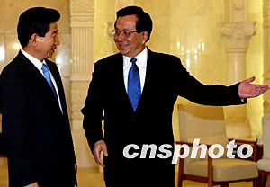 應中國國家主席胡錦濤的邀請,韓國總統(tǒng)盧武鉉于7日至10日對中國進行國事訪問。胡錦濤7日下午在人民大會堂與來華進行國事訪問的韓國總統(tǒng)盧武鉉舉行會談時稱,在新世紀建立和發(fā)展中韓全面合作伙伴關(guān)系將開創(chuàng)中韓睦鄰友好和互利合作的新局面。