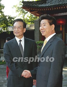 組圖:溫家寶會見韓國總統(tǒng)盧武鉉