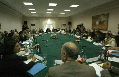 據(jù)法新社報(bào)道,臨時(shí)管理委員會(huì)由25人組成,首次會(huì)議在前軍事工業(yè)部舉行。軍事工業(yè)部接近原來(lái)的總統(tǒng)府,此地已成為美英聯(lián)軍總部。