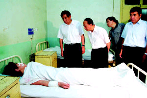 栗戰(zhàn)書說,發(fā)生在炭市街鮮鑫水特產(chǎn)副食品商場的爆炸事件,給人民群眾的生命財產(chǎn)造成很大損失,我們市上的領導同志心情極為沉重!氨R环狡桨病,是我們的責任。此事件的發(fā)生,我們深感不安。一定要切實做好維護社會治安、維護社會穩(wěn)定、保障人民群眾安全的工作。對事件的善后工作,市上已經(jīng)作了部署,正在逐項落實。我們來看望受傷的人員,向傷者家屬表示慰問,并進一步檢查救治措施的落實。醫(yī)院已組織最好的醫(yī)生和設備、藥品,全力救治傷者。請你們放心,我們會盡最大力量,搞好醫(yī)救。事件的原因正在調(diào)查中,不管是責任事故還是治安案件,我們一定要組織強有力的力量,全力以赴,盡快查明原因,堅決追究責任者、肇事者,嚴懲危害人民生命的不法之徒。我們要求,全市各級黨組織和各級政府,一定要高度重視和切實抓好社會治安,抓好社會矛盾的調(diào)節(jié),抓好維護社會穩(wěn)定的各項措施的落實,以對黨、對人民、對社會高度負責的政治責任感,盡到“保一方平安”的責任,把代表好、維護好、實現(xiàn)好人民利益的要求,真正落實在每一項工作中。