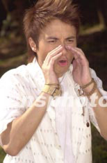 歌影紅星古巨基7月16日在香港飛鵝山為其新歌《天堂流淚》拍攝MV。古巨基在酷熱天氣下拍攝,滿手是汗仍表情投入。中新社記者:鄧慶樂