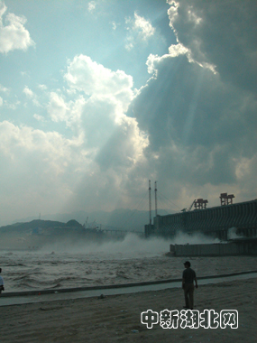 圖:三峽工程大壩上空出現(xiàn)“光瀑奇觀”