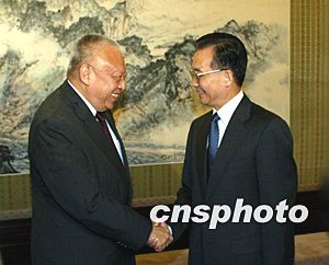 中國國務(wù)院總理溫家寶今天下午在中南海紫光閣會(huì)見香港特別行政區(qū)行政長官董建華時(shí)對(duì)在場的記者連說了四個(gè)“依然相信”。