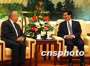 胡錦濤會見赴京述職的香港特區(qū)行政長官董建華