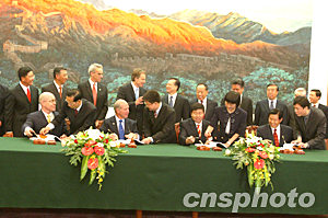 會(huì)談后,溫家寶和布萊爾出席了關(guān)于組建青島前港集裝箱碼頭有限責(zé)任公司合資合同的簽字儀式,并共同會(huì)見了英方隨行企業(yè)界人士。