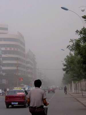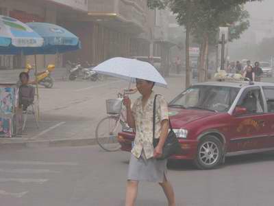 中新網(wǎng)7月21日電 據(jù)中廣網(wǎng)報道,今天清晨開始,寧夏回族自治區(qū)由中部向北部出現(xiàn)了明顯的揚沙浮塵天氣,早晨9時最嚴(yán)重時,首府銀川天色昏暗,能見度低,空氣中一味嗆人的土腥味,街頭行人不少婦女撐傘擋塵,一些人還不顧炎熱戴上了口罩。