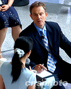 眼下已是暑假,可清華大學(xué)舜德樓一樓大廳卻熱鬧異常,今天上午,一場(chǎng)別開生面的圓桌座談會(huì)正在這里舉行,座談會(huì)的主角是正在中國訪問的英國首相布萊爾與百名清華學(xué)子。