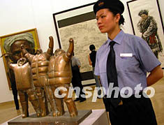 中國美術館建館四十周年慶典暨改造裝修工程竣工儀式二十三日舉行,展現(xiàn)百年中國美術發(fā)展歷程的館藏精品在裝飾一新的展廳中,呈現(xiàn)迷人風采。中新社記者:張勤