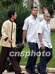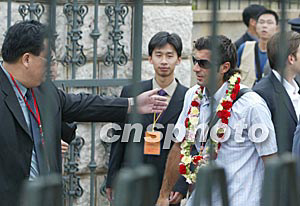 隨后下車的羅納爾多、齊達(dá)內(nèi)、菲戈、勞爾等巨星的號召力顯然不如剛剛加盟皇馬的貝克漢姆,圍在身邊的記者要少許多。趁此之機(jī),本社記者在第一時(shí)間采訪了菲戈,菲戈告訴記者,這是他第一次到中國大陸,感覺很不錯(cuò)。