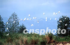 圖:白鷺飛臨福州烏龍江濕地公園覓食避暑