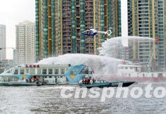 在反水上劫持人質(zhì)事件的處置行動中,情況設(shè)想是恐怖分子在某國際俱樂部大型招待會上施放毒氣后企圖沿珠江逃竄。在江邊,恐怖分子乘上了一艘快艇,劫持珠江面上的一艘游船,以船上的游客作為人質(zhì),與我方對峙。廣東省反恐總指揮部開展空中偵察、水上堵截、陸上封鎖、談判攻心等處置,最終及時解救人質(zhì)、排除爆炸物品、搶救傷員并抓獲“恐怖分子”。