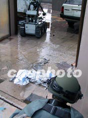 這時,只見領(lǐng)事館面向珠江的一面突然間噴出漫天的水霧,火勢逐步被控制,隨后漸漸被撲滅。原來消防官兵門正用一艘珠江上的消防用船展開滅火救援,接著,警方用警犬、排爆機器人展開搜爆、排爆工作,解救民眾。