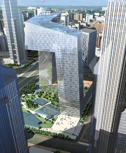 專家評委認為這是一個不卑不亢的方案,既有鮮明的個性,又無排他性。作為一個優(yōu)美、有力的雕塑形象,它既能代表新北京的形象,又可以用建筑的語言表達電視媒體的重要性和文化性。其結(jié)構(gòu)方案新穎、可實施,會推動中國高層建筑的結(jié)構(gòu)體系、結(jié)構(gòu)思想的創(chuàng)造。