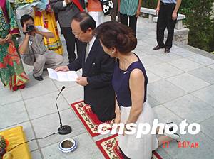 九時整,在《慈母頌》、《世上只有媽媽好》的音樂聲中,章孝嚴(yán)夫婦首先恭敬地為母親獻(xiàn)上鮮花和水果,虔誠地為母親行了三拜九叩之禮。之后,章孝嚴(yán)夫婦長跪在母親的墓前,章孝嚴(yán)把衷腸之作《祭母文》情真意切地朗聲念給母親:“哀哀吾母,育子劬勞;未見兒長,魂赴池瑤;棄世緣故,至今難曉;子思母愛,淚涌如濤;天人兩隔,倍增煎熬;母葬桂林,萬里迢迢;拔步祭掃,不因路遙;歸宗心愿,去歲始了;寸寸孝思,竟日縈繞;山清水秀,鳳凰來朝;謹(jǐn)此奉稟,永顧兒曹;臨文涕泣,萬念俱拋;嗚呼哀哉,尚饗!