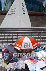 香港超級(jí)球迷7月28日忍受烈日煎熬在香港大球場(chǎng)排隊(duì),準(zhǔn)備輪候購(gòu)買(mǎi)“皇家馬德里”蒞港作賽入場(chǎng)券。作者:洪少葵