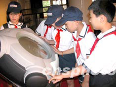 八月一日,宋慶齡基金會、全國少工委聯(lián)合瑞士斯沃琪公司向北京市部分中小學和校外教育單位捐贈一批寓意深刻的禮物——著名的瑞士斯沃琪鐘表。以表示對中國教育事業(yè)的鼎力支持和對廣大少年兒童的真切關愛。圖為小學生們在捐贈儀式上興致勃勃地觀看富有科技魅力和時代氣息的鐘表。中新社記者:張勤