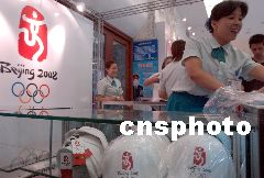 二00八年北京奧運(yùn)會(huì)會(huì)徽“中國(guó)印·舞動(dòng)的北京”昨晚在天壇揭幕,今天,印有新會(huì)徽的紀(jì)念品就擺上了京城幾家授權(quán)商場(chǎng)的專(zhuān)柜。市民們爭(zhēng)相購(gòu)買(mǎi),都希望能在第一時(shí)間擁有這些極富收藏價(jià)值的紀(jì)念品。