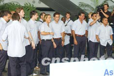 西班牙皇家馬德里足球隊八月六日下午抵香港,圖為眾球星向二千球迷致意。中新社記者:潘索菲