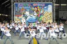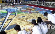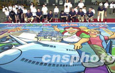 為喚起全澳市民支持本地民航業(yè)的發(fā)展,澳門國際機場專營股份有限公司在專業(yè)畫室的協(xié)助下,發(fā)起本澳小畫家繪畫的以機場為主題的大型圖畫『攜手繪出新氣象』八日舉行繪制成功儀式。中新社記者:李剛