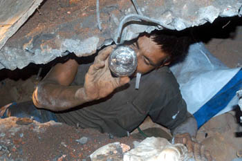 省委常委、市委書記鄭立中趕到了,受困工人的安危緊緊牽動(dòng)著他的心。他焦急地問(wèn)湖里區(qū)委書記何清秋:“還有多少人被壓在磚礫里?”當(dāng)后坑派出所的民警陳德福掰著指頭報(bào)出受壓的人數(shù)后,鄭立中果斷地對(duì)在場(chǎng)指揮的市消防支隊(duì)領(lǐng)導(dǎo)說(shuō),要馬上弄清還埋在鋼筋水泥板下的民工的方位。接著他詢問(wèn)了消防戰(zhàn)士搶救裝備的情況,得知在市委市政府的重視下,我市消防部隊(duì)的裝備是一流的,能夠應(yīng)付急險(xiǎn)搶救的需要,鄭立中放心地點(diǎn)了點(diǎn)頭。同時(shí)他讓有關(guān)部門領(lǐng)導(dǎo)立即向地質(zhì)勘探部門請(qǐng)求探測(cè)設(shè)備的支援,他還請(qǐng)市安全監(jiān)督局的同志了解外地搜救的辦法。隨后鄭立中把有關(guān)部門領(lǐng)導(dǎo)召集到身邊說(shuō):“人命關(guān)天,我們要想盡一切辦法救出每一位受困工人。”鄭立中詳細(xì)詢問(wèn)事故搶救情況,多次向責(zé)任區(qū)民警、房東和脫險(xiǎn)工人核實(shí)受困工人準(zhǔn)確人數(shù)。他再三強(qiáng)調(diào),一定要調(diào)查精確,確保每個(gè)受困工人都能施救成功。