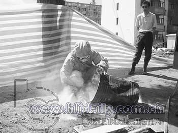 從北疆花園收購走5個金屬桶的的南方人叫李會珍,來自河南,今年31歲,在齊齊哈爾以收購廢品為生。李會珍在北疆花園工地附近收購到這5個金屬桶后,用三輪車將這5個桶拉到他常去賣廢品的龍沙區(qū)鐵南廢品收購站。因為這5個桶中有一個已經(jīng)破損,從這四個好桶子和一個破桶子可以看出,桶子的蓋子是銅的,桶子的外壁是鐵的,桶子的內(nèi)壁是鉛的。因為銅、鐵、鉛的價錢是不一樣的,他在鐵南廢品收購站旁邊,找到了朋友王成,并且借來了鐵鋸,打算把這幾個桶鋸開再賣。