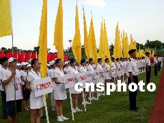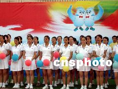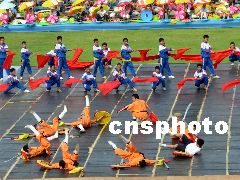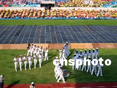 2003年8月10日下午5時,以《青春放飛新世紀》為主題的廣東省第六屆大學生運動會開幕式在湛江師范學院體育場進行第二次預演,規(guī)?涨,精彩紛呈。熱烈、奔放、高昂、大氣的格調(diào)令人耳目一新。李滿青 攝