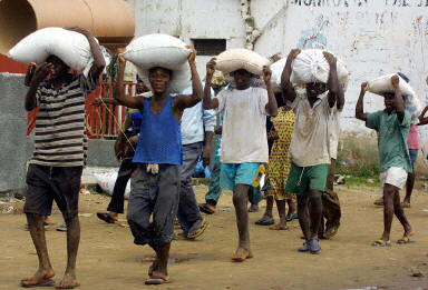 圖:利比里亞饑民哄搶在存放港口的糧食
