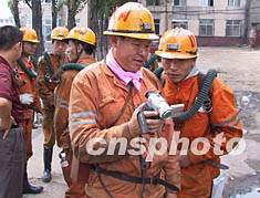 中新社大同八月十四日電(記者張恩)今天下午兩點三十分,大同市礦山救護大隊副隊長范生元帶領(lǐng)六名礦山救護隊員,攜帶有關(guān)拍錄設(shè)備深入“八·一一”礦難事故發(fā)生現(xiàn)場井下,為國務(wù)院事故調(diào)查組實地取證。