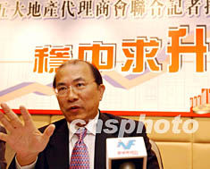 八月十四日,香港五大地產(chǎn)代理商會為救樓市向政府進言,建議務求樓市“穩(wěn)中求升”。圖為香港地產(chǎn)代理專業(yè)協(xié)會有限公司會長鄧意民在記者會上暢所欲言。作者:潘索菲