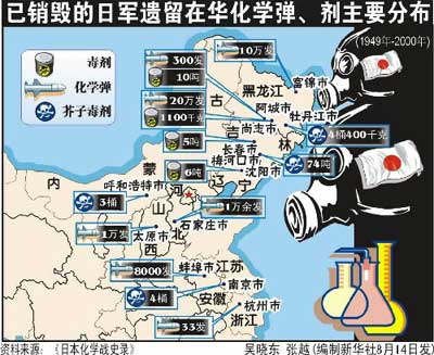 資料:已銷毀的日軍遺留在華化學(xué)彈、劑分布圖
