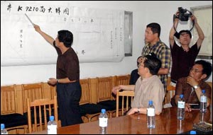在后方指揮部的一間小會議室里,閃光燈在不停地閃爍,領(lǐng)導(dǎo)、煤礦負(fù)責(zé)人、記者,擠了滿滿的一屋人。晚上22點25分,山西省省委書記田成平從太原趕到陽泉,長形會議桌前,煤礦負(fù)責(zé)人正在掛在墻上的“裕公井K7210面大樣圖”前介紹煤礦和事故的基本情況。