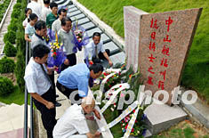 抗日戰(zhàn)爭勝利五十八周年之日,中山艦福州籍抗日將士之墓在福州三山陵園落成,八十八歲的中山艦幸存老兵邱奕殿與部分抗日將士家屬特地來到墓前,為遇難者獻上鮮花。1938年10月24日,在武漢保衛(wèi)戰(zhàn)中,中山艦遭六架日軍飛機轟炸,不幸沉沒,艦長薩師俊等二十五名官兵血祭長江,其中有二十二位是福州籍官兵。作者:祝敏松