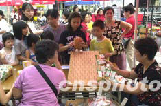 圖為市民和游客興致勃勃地參加有獎游戲活動。