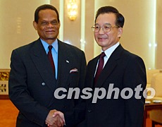 中新社北京八月十八日電(記者齊彬)中國國務(wù)院總理溫家寶今天會見了到訪的第五十八屆聯(lián)合國大會當(dāng)選主席、圣盧西亞外交、國際貿(mào)易和民航部長朱利安·亨特。賓主雙方就當(dāng)前國際形勢、如何在和平與發(fā)展領(lǐng)域發(fā)揮聯(lián)合國的作用等問題交換了看法。