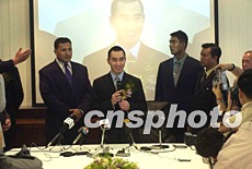 「新濠國(guó)際」董事總經(jīng)理何猷龍?jiān)诎拈T(mén)區(qū)總部成立儀式上舉行記者會(huì),回答媒體提問(wèn)。中新社記者李剛