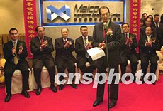 新公司成立儀式上「新濠國(guó)際」董事總經(jīng)理何猷龍(中)等為新公司祈福。 中新社記者:李剛