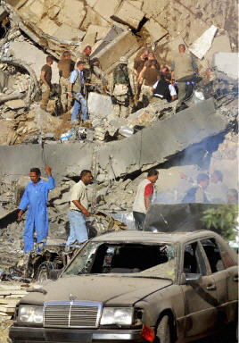 當(dāng)?shù)貢r(shí)間8月19日16:40左右(北京時(shí)間8月19日20:40左右),設(shè)在伊拉克首都巴格達(dá)運(yùn)河酒店的聯(lián)合國辦事機(jī)構(gòu)總部發(fā)生強(qiáng)烈爆炸,有證據(jù)表明爆炸是汽車炸彈造成的。在爆炸事件中,聯(lián)合國伊拉克問題特別代表德梅洛受重傷。(春風(fēng))