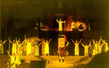 他透露,與傳統(tǒng)的悲傷結(jié)尾不同,此次演出為《阿依達》設計了一個富有東方情調(diào)的結(jié)尾,越到結(jié)束時氣氛越熱烈,燈光熄滅后金字塔上將點亮幾百個火把,成百上千的氣球和蝴蝶將飛向空中……