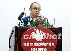 博鰲二十一世紀(jì)房地產(chǎn)論壇二00三屆年會二十三日在海南博鰲隆重開幕,SOHO中國董事長潘石屹在論壇上演講。作者:莫成雄