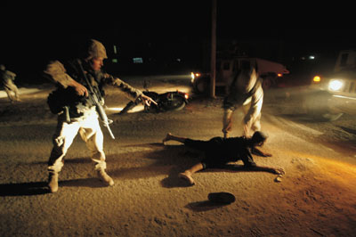 對(duì)美軍來(lái)說(shuō),另外一個(gè)重要的源是在巷戰(zhàn)中俘獲的伊拉克游擊分子。美國(guó)人會(huì)“蓄意”挑起沖突,請(qǐng)君入甕。譬如說(shuō),他們會(huì)將一輛沒(méi)有任何掩護(hù)的巡邏坦克開到可疑地區(qū)。伊拉克游擊分子見(jiàn)此“良機(jī)”,便會(huì)貿(mào)然出來(lái)行動(dòng)。坦克手鎖定伊拉克發(fā)動(dòng)進(jìn)攻的方位后,便迅速請(qǐng)求支援。美軍會(huì)包圍住整個(gè)街區(qū),特種分隊(duì)對(duì)游擊分子藏身之地發(fā)動(dòng)強(qiáng)攻。當(dāng)然,所有被俘的伊拉克人都被認(rèn)為是薩達(dá)姆的“同黨”,是薩達(dá)姆資助他們進(jìn)行抵抗行動(dòng)。所以,這些俘虜均被拷問(wèn),讓他們供出從何人手中得到買武器的錢。
