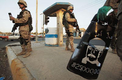 也就是在一個(gè)半月前,其時(shí)美軍已經(jīng)正式開始追捕時(shí),又有人在巴格達(dá)城發(fā)現(xiàn)了他的蹤影。當(dāng)時(shí)巴格達(dá)已經(jīng)是相當(dāng)危險(xiǎn):盟軍在進(jìn)行不間斷搜查、機(jī)動(dòng)車輛隨時(shí)都可都被擋截,大街上三步一哨,五步一崗,戒備森嚴(yán)。薩達(dá)姆想冒險(xiǎn)通過(guò)老的走私通道潛入北方,畢竟那里的親朋好友會(huì)多一些。
