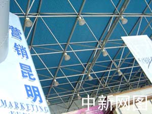 2003年中國昆明出口商品交易會將于8月26日正式開幕。圖為工作人員正緊張布展。張明 攝