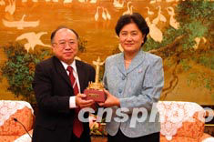 八月二十六日,全國(guó)政協(xié)副主席、中共中央統(tǒng)戰(zhàn)部部長(zhǎng)劉延?xùn)|(右)在北京會(huì)見了以廖長(zhǎng)城為團(tuán)長(zhǎng)的香港律師界訪京團(tuán)。中新社記者:盛佳鵬