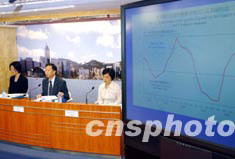 香港政府經(jīng)濟(jì)顧問(wèn)鄧廣堯,8月29日就2003年第二季經(jīng)濟(jì)報(bào)告及2003年本地生產(chǎn)總值和物價(jià)預(yù)測(cè)舉行記者會(huì),受SARS影響,今年第二季香港經(jīng)濟(jì)錄得負(fù)增長(zhǎng)0.5%。不過(guò),港府將全年經(jīng)濟(jì)增長(zhǎng)預(yù)測(cè),由1.5%調(diào)升至2%。中新社記者:洪少葵