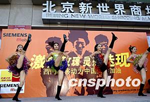 西門子移動電話公司三十日舉行“萬人簽名為中國女足加油”活動,足球?qū)氊惥实奈璧副硌輰⒒顒油葡蚋叱。中新社記?趙振清