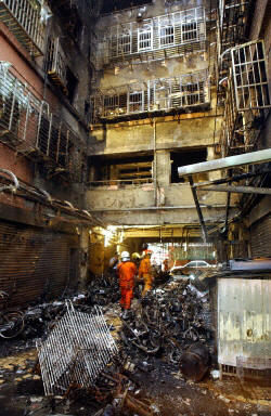 中新網8月31日電 臺北縣蘆洲民族街今日凌晨發(fā)生的連棟公寓火災案,經過個多小時救援,已完成搶救工作,據統計目前有80余名死傷者,其中13人死亡,余都正在9個醫(yī)院救護中,而造成嚴重傷亡主要原因系吸入性嚴重嗆傷及大面積燒、燙傷導致。