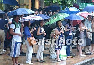 相關(guān)報(bào)道:圖:香港不畏臺(tái)風(fēng)緊羅密鼓為鐘表展開幕布展 (2003-09-02 19:04:36) “雙風(fēng)眼”臺(tái)風(fēng)杜鵑迫近 香港已經(jīng)改掛八號(hào)風(fēng)球 (2003-09-02 17:15:34) 香港國(guó)泰航班受臺(tái)風(fēng)“杜鵑”影響今晚全部停航 (2003-09-02 14:41:17) 臺(tái)風(fēng)“杜鵑”直逼香港 最大可能在珠江口登陸 (2003-09-02 09:47:55) |