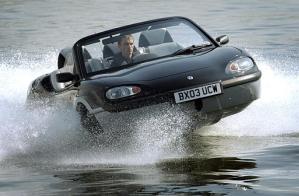 圖:在泰晤士河上高速行駛的兩棲汽車