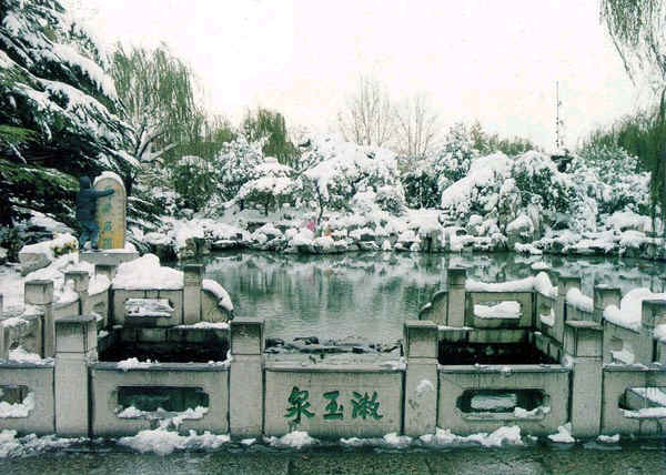 趵突泉又名檻泉,為濼水之源,至今已有二千七百年的歷史。趵突泉,三窟并發(fā),聲如隱雷,“泉源上奮,水涌若輪”。泉水一年四季恒定在攝氏18度左右,嚴(yán)冬,水面上水氣裊裊,像一層薄薄的煙霧,一邊是泉池幽深波光粼粼,一邊是樓閣彩繪,雕梁畫(huà)棟,構(gòu)成了一幅奇妙的人間仙境。歷代著名文學(xué)家、哲學(xué)家、詩(shī)人諸如曾鞏、蘇軾、張養(yǎng)浩、王守仁、蒲松齡等都有吟泉佳作和美文。